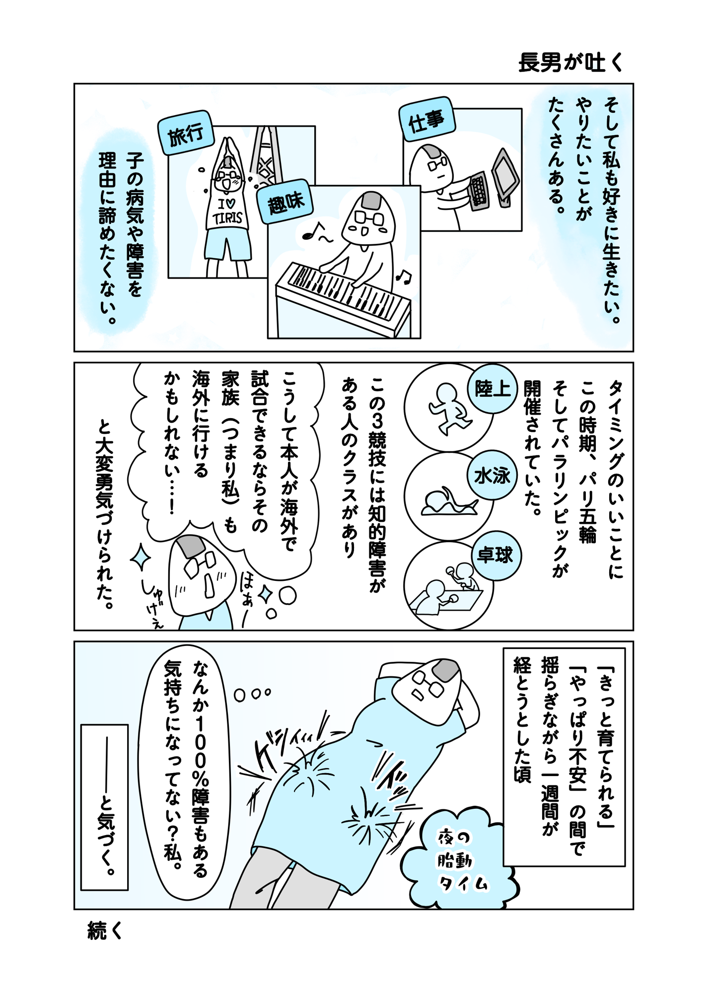 「きっと育てられる」「やっぱり不安」の間で揺らぎながら一週間が経とうとした頃、「なんか100%障害もある気持ちになってない?私。」と気づく。