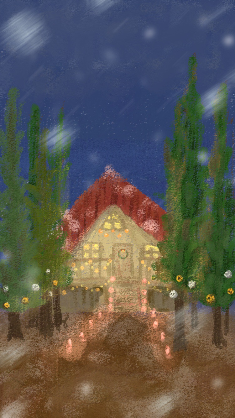 冬なのでいっぱい雪を降らせて、そこにモーションブラーをかけたのですが、壁紙のような静的で、かつ手に持つので表示する画面自体がよく動くよう場所のイラストにモーションブラーをかけたらダメですね、酔います。動くものに対するぼかしもあんましない方が良さそう。勉強になりました笑